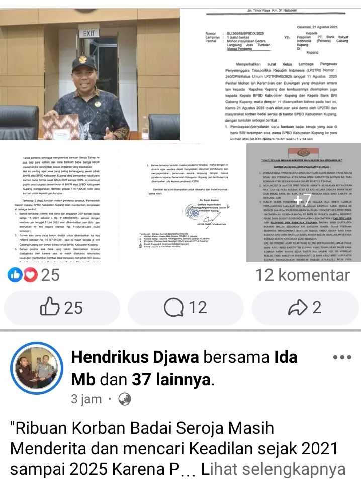 Dugaan adanya koruptor yang bersembunyi di BNPB atau BPBD Kabupaten Kupang menggunakan identitas pribadi korban untuk kepentingan mereka sendiri semakin memperkeruh masalah tersebut. Masyarakat dan LP2TRI menantikan kejelasan penuh dari pihak-pihak terkait untuk mengakhiri polemik yang telah berlangsung sejak beberapa tahun terakhir.